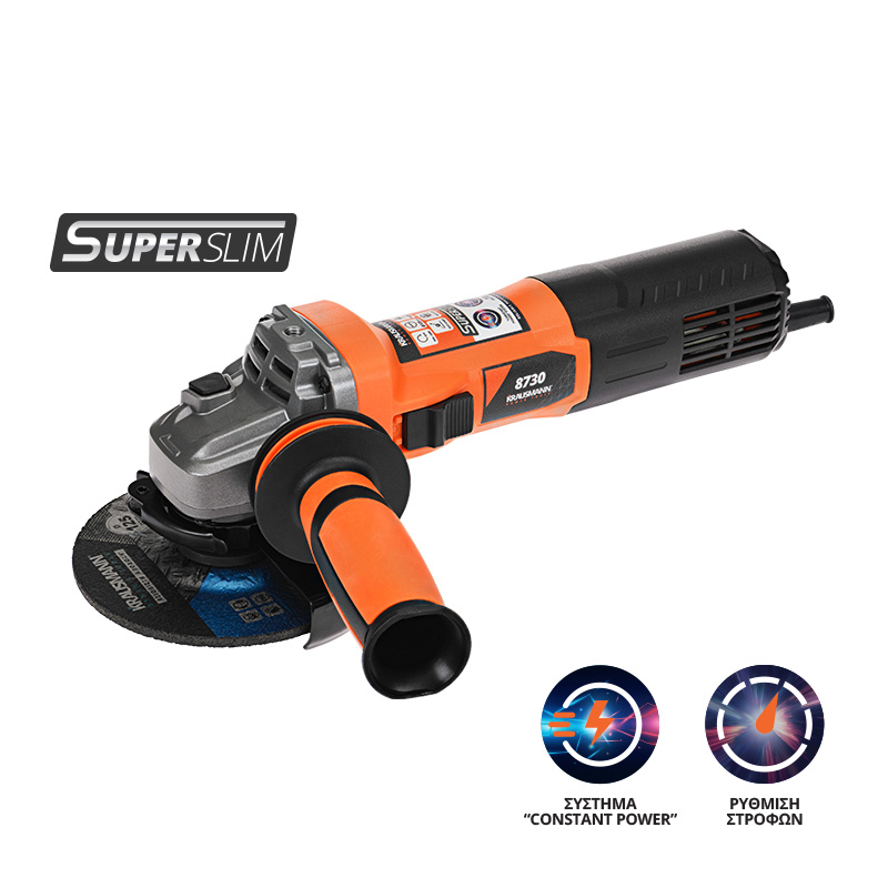 Ο γωνιακός τροχός 8730 έχει σχεδιαστεί για τρόχισμα και κόψιμο τοιχοποιίας και μετάλλων και διαθέτει αντιολισθητική λαβή τριών θέσεων για περισσότερη άνεση. Κόμπακτ μέγεθος σώματος για χρήση ακόμα και με το ένα χέρι, με εξαιρετικά χαμηλούς κραδασμούς. Διαθέτει σύστημα “CONSTANT POWER” ελεγχόμενου φινιρίσματος που διατηρεί το περιστρεφόμενο πέλμα σε σταθερή ταχύτητα.